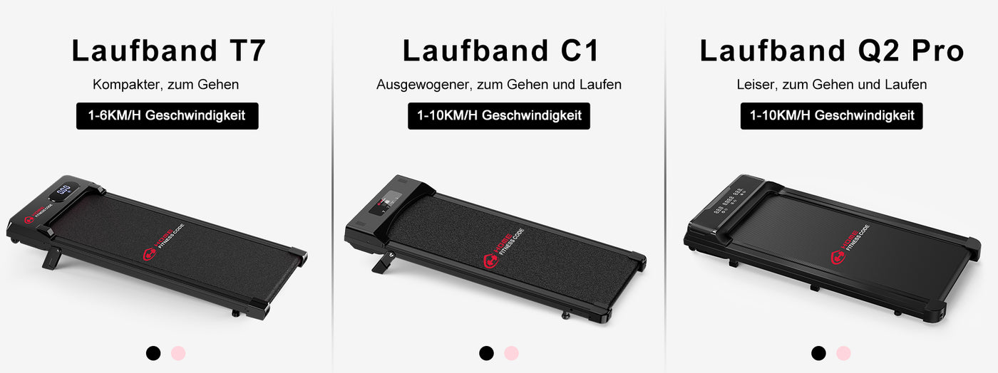 | Title | Laufband T7, Tempo 1-6KM/H, 5 % Manuelle Steigung | Laufband C1, Tempo 1-10KM/H, 5 % Manuelle Steigung | Laufband Q2 Pro, Tempo 1-10KM/H | Laufband Y1 mit 0-12 % Automatischer Steigung, Geschwindigkeit 1-10KM/H |